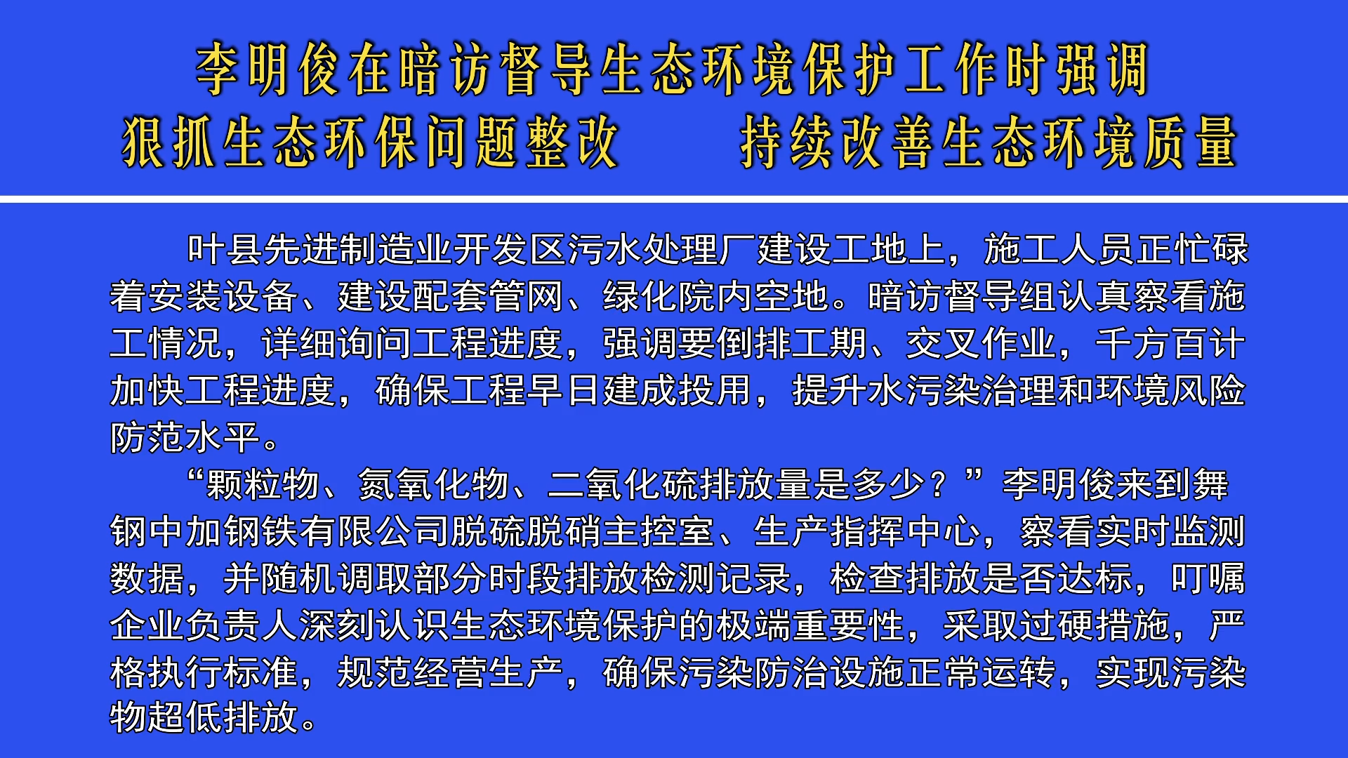 李明俊在暗訪督導生態(tài)環(huán)境保護工作時強...