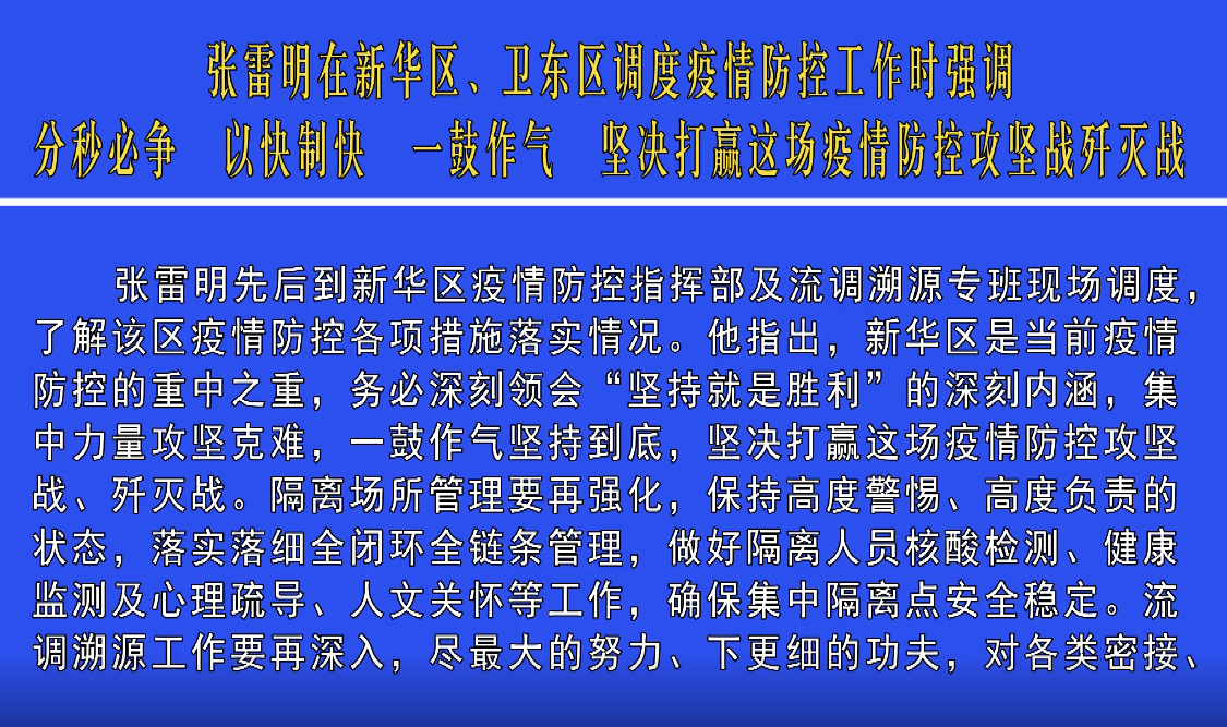 張雷明在新華區(qū)、衛(wèi)東區(qū)調(diào)度疫情防控工作時(shí)強(qiáng)調(diào) 分秒必爭 以快...