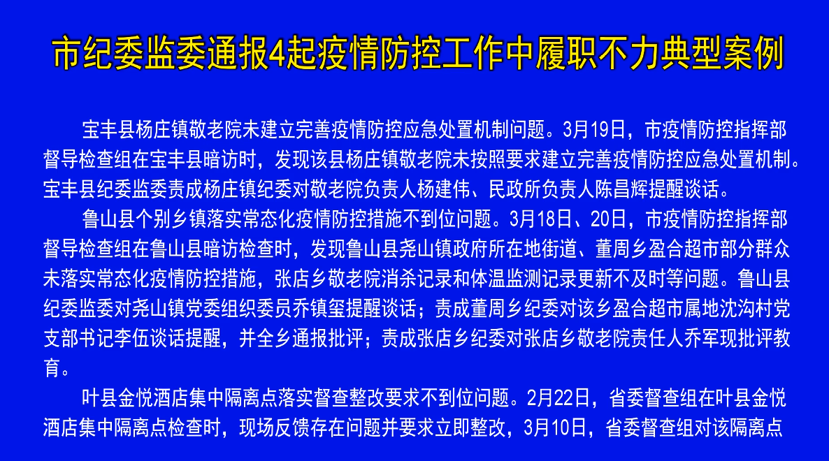 市紀(jì)委監(jiān)委通報(bào)4起疫情防控工作中履職不力典型案例