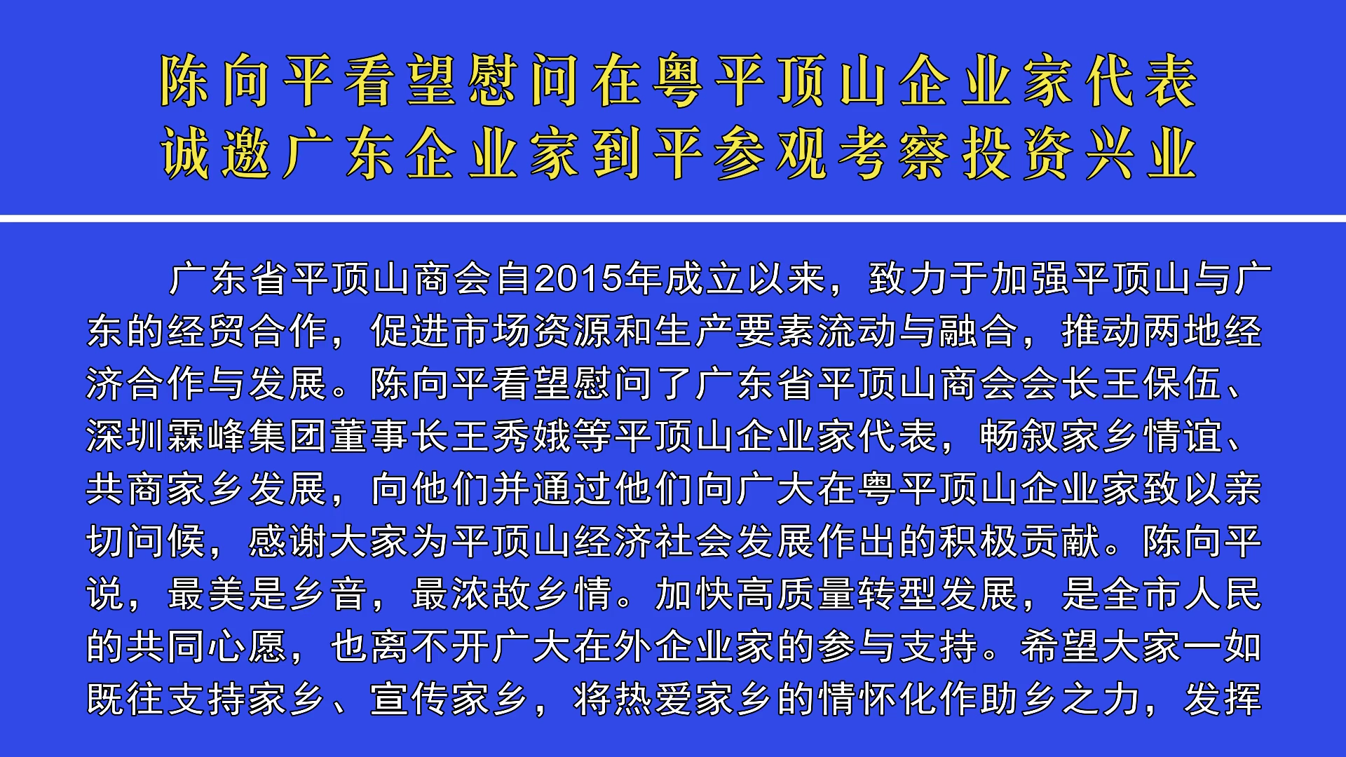 陳向平看望慰問在粵平頂山企業(yè)家代表? 誠邀廣東企業(yè)家到平參觀...
